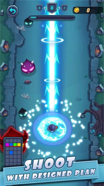 这作为一款闯关射击类型的游戏。在这款游戏中,在游戏里玩家需要操控魔法师主角的攻击方向,看清楚迷雾中敌人的位置,阻挡一波又一波的敌人。在远处看不清的迷雾中,你永远不知道暗藏着什么危险。游戏还有道具可以使用,让你的魔法更具有杀伤力。