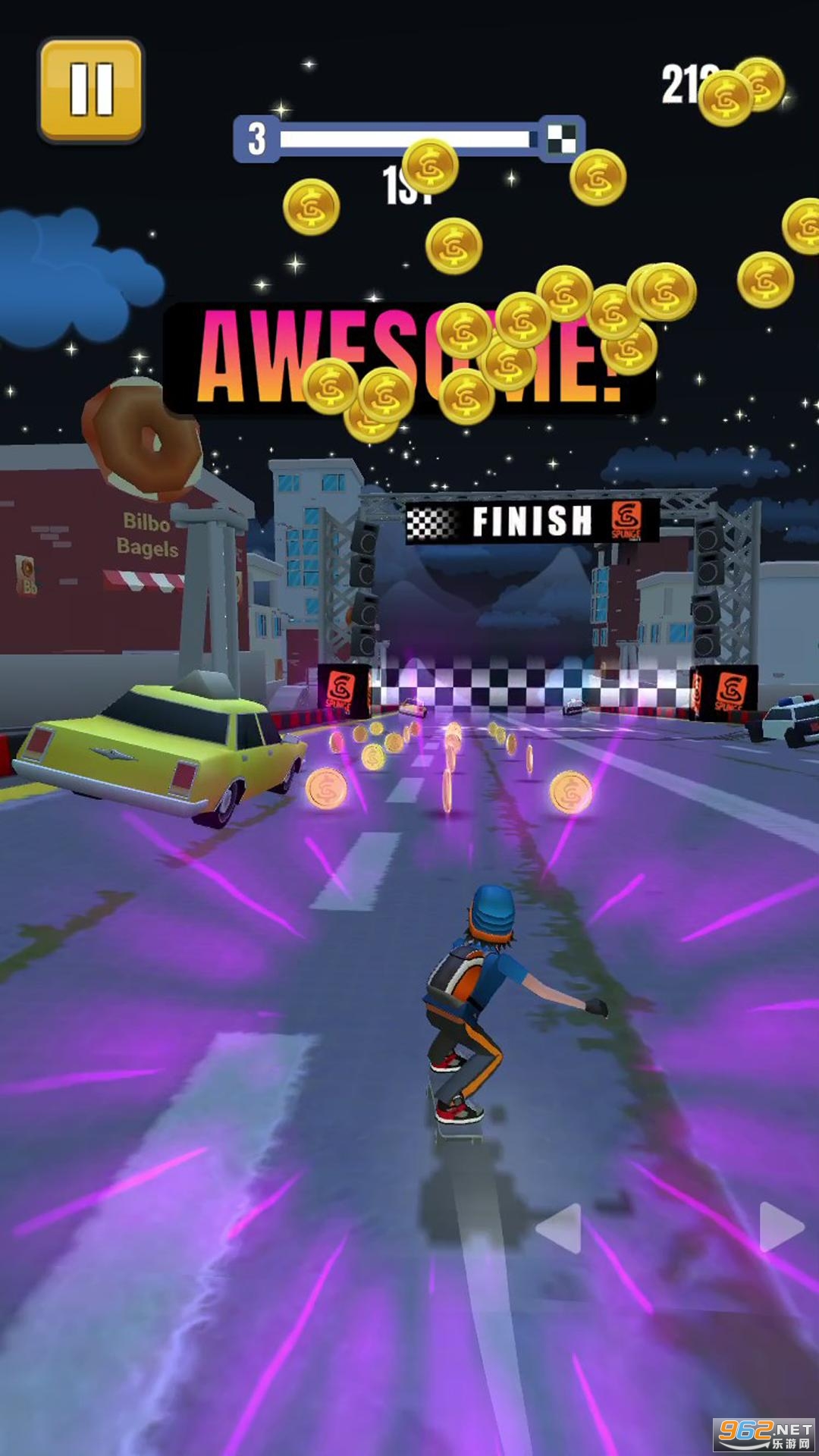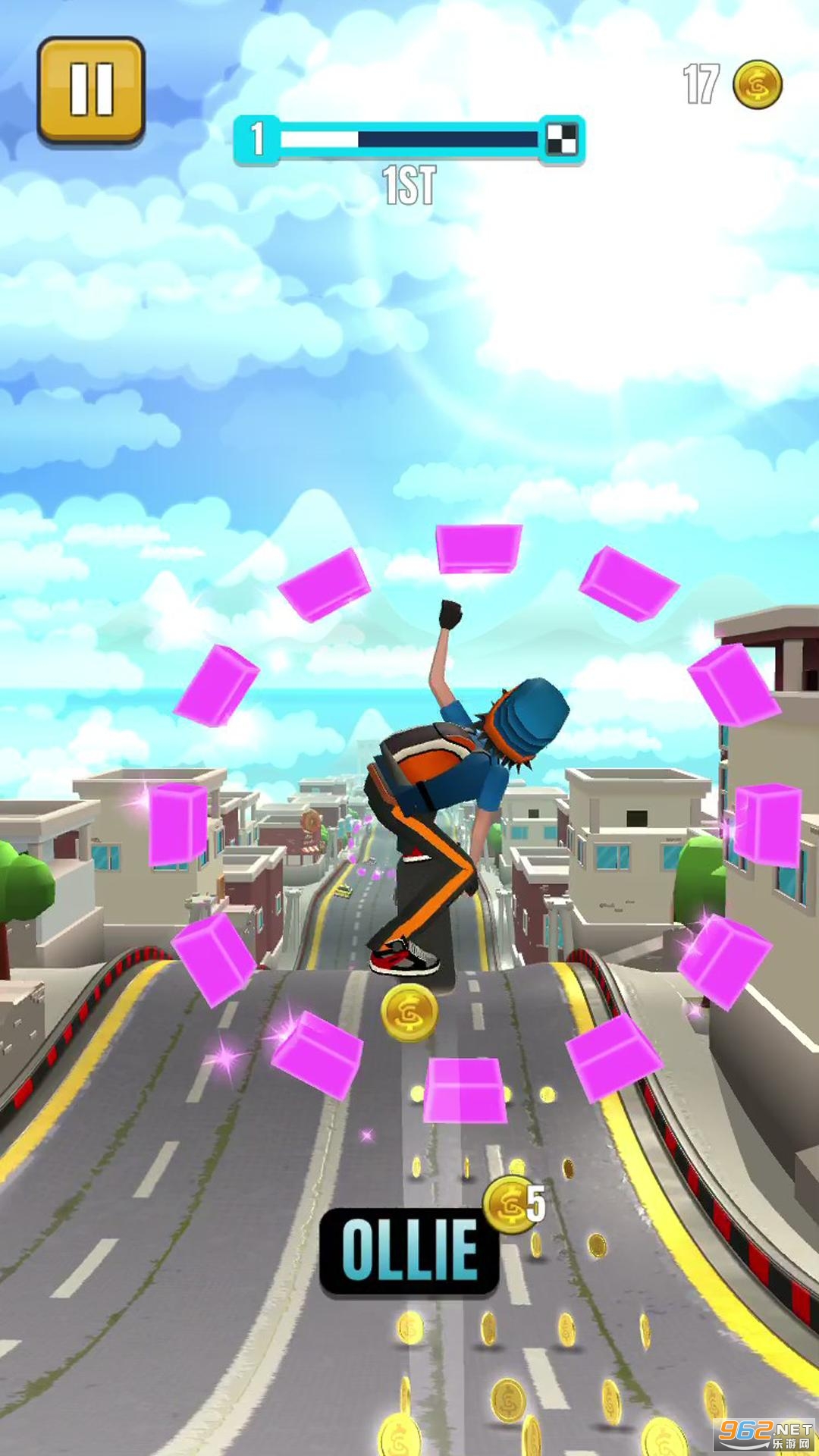 1、一款采用了卡通幻想风格的城市滑冰类型的手游。