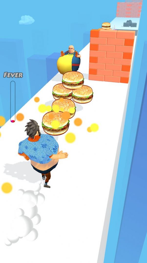 1、通过吃道路上的美食来让角色的肚子变大,在面对其他大肚腩的时候你将有绝对的优势。