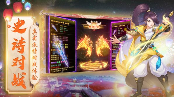 3、人、仙、魔三界纷争开启,神兽魔宠、百变时装任你选择。更有跨服比武全新玩法体验。