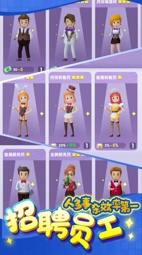 3、身为老板的你,需要制定重要管理决策,吸引更多的顾客,发展壮大俱乐部,你就是最棒的娱乐大亨。