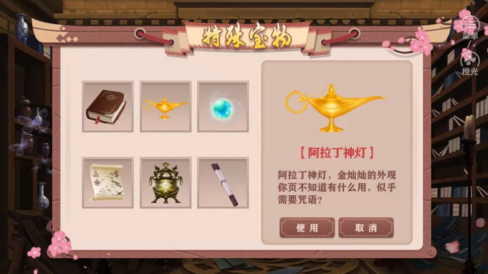我的丹药:6个。宅院-库房,功能性宝物-炼丹炉。