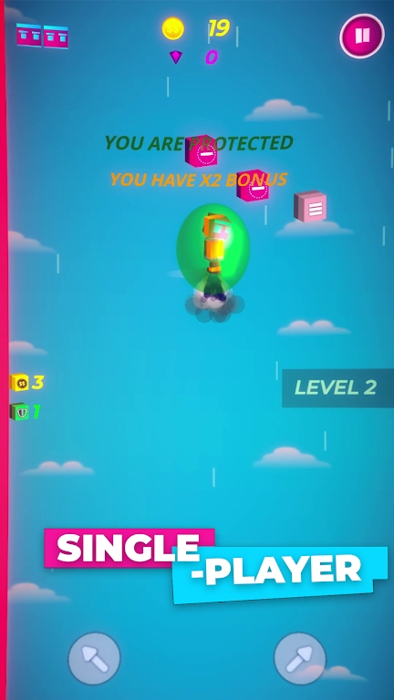 3、如果你想增加你的火力,你必须在空中随机拾取物品,游戏可以增加攻击力并击中敌人。
