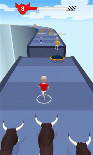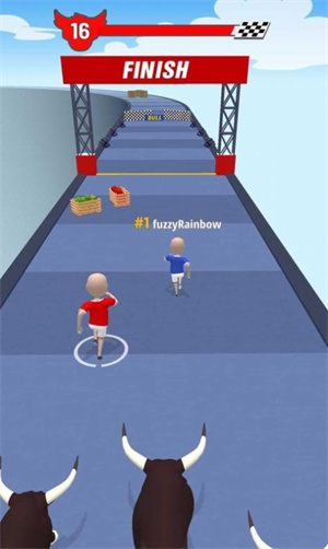 1、危险的公牛会在后方不断的追赶,在游戏里玩家一旦撞击到障碍就会耽误更多的时间;