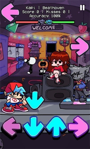 周五夜放克玩家版游戏作为一款超级好玩的周五夜放克系列游戏,游戏中,那满满的ACG画风,非常受欢迎,在游戏里玩家也很喜欢这种游戏。周五夜放克玩家版游戏内,在游戏里玩家们需要跟随着音乐节奏,来做出指定的动作,非常考验玩家的反应力跟手速,玩法很有意思,快来试试你的手速跟不跟的上吧!