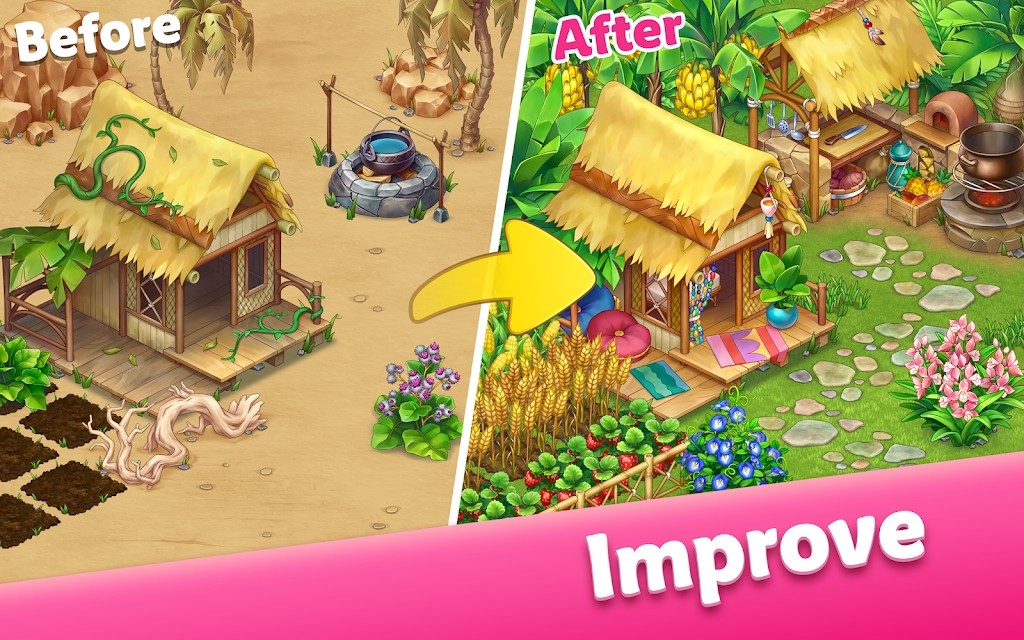 金银岛冒险安卓版作为一款海岛主题游戏,你和你的女朋友被困在一个岛上,不幸的是原始森林中的这场危机,为了生存你需要找到所有可用的资源,抵抗野兽的袭击,在危机中谋求生存,建造你的房子,准备长期生存。