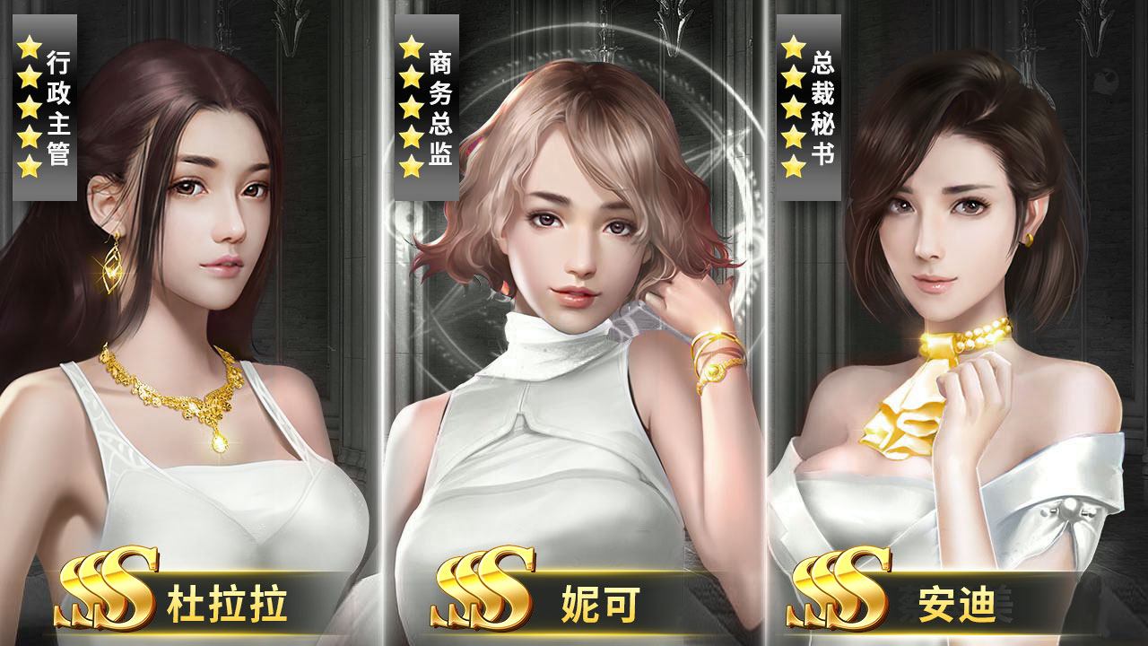 2、首充0.1元=全套108位永久五星秘书!在游戏里玩家只有一个任务就是赚钱;