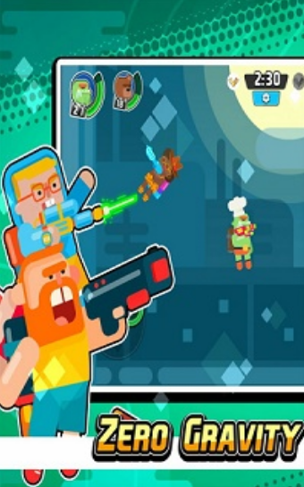 1、失重乱斗游戏中有各种角色和武器。在游戏里玩家可以在失重空间进行各种战斗。