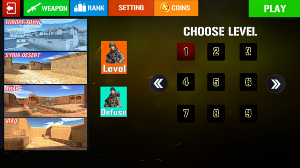 在游戏游戏开始时玩家选择自己的主武器和副武器,潜入敌人的营地消灭每一个的敌人;