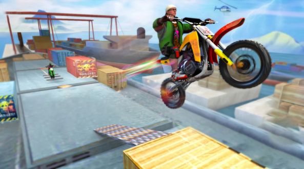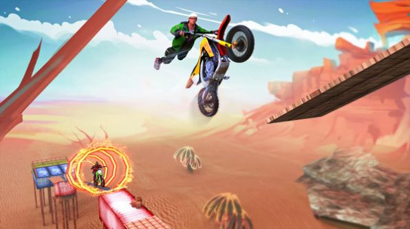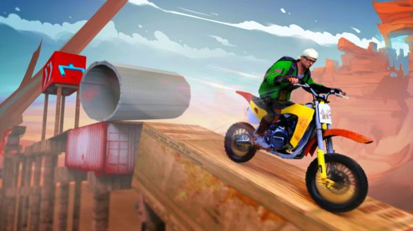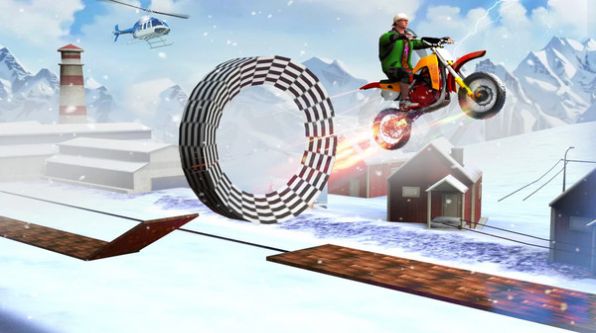 在游戏中,玩家将扮演一位优秀的特技摩托车手,玩家需要操纵车手在各种惊险的赛道上表演摩托车特技;