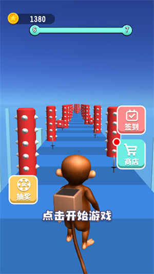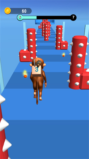 2、将控制小人开始在地图当中快速的奔跑,沿途来避开各种不同的障碍物;