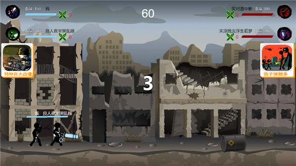 1.手游开始后,玩家将自由选择一个的火柴人角色进行地图中进行刺激的战斗,享受热血激情;