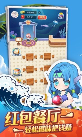 红包餐厅红包版作为一款策略经营模拟手游。放置玩法无比轻松,升级店铺扩大面积增加更多的座位招募更多的服务员就能提升餐厅的客流量,然后就能获得更多奖励啦!每天登陆还能参与各种抽奖活动,多种豪礼等你领取,成为餐厅老板发家致富吧。