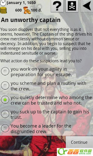 Pirates and Traders(海盗和商人)作为一款在Android市场上评价非常高的回合制角色扮演手游,在该游戏中,你能选择成为和平的商人,为各个岛屿供应各种商品;或者成为一个贪婪的海盗,在海上发动争夺土地和财富的战争。回合制手游,该游戏在安卓市场中有着非常好的评价。在游戏里面如果用户选择商人就需要子啊各个岛屿之间不停的穿梭,买东卖西,赚取高额的利润。如果用户选择海盗,在游戏里玩家将会踏上一条血腥的道路,在游戏里玩家需要在海上发动战争,用暴力手段获得土地和财富。