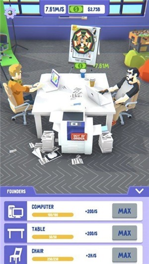 启动空闲办公室是一款非常好玩的趣味模拟办公室手游。玩家在游戏中可以尝试到各种模拟办公室手游的玩法内容,如根据自己的梦想来实施自己的计划,像要建立起自己的商业帝国,雇佣更多的人员来帮助公司的启动运营等。喜欢该游戏的用户快下载挑战吧。