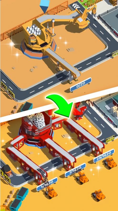 1、解锁并升级新的建筑、车辆和机器,以扩展您的生产线。磨刀不误砍柴工,好的设备,才是生产力之王;