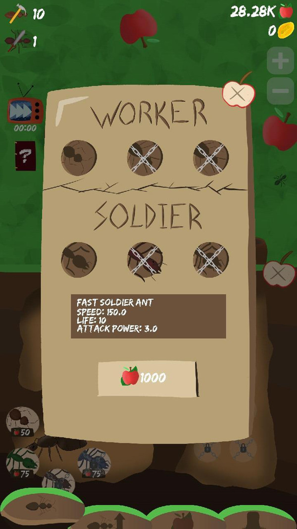 2、建立四种蚂蚁,通过不同的蚂蚁种类来保卫并建设你的蚁丘;