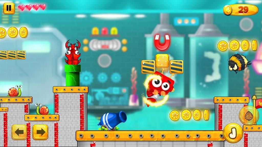 3.打破可破坏的砖块,射击以从悬挂的树上获取果实和力量。建议您小心穿越移动平台。