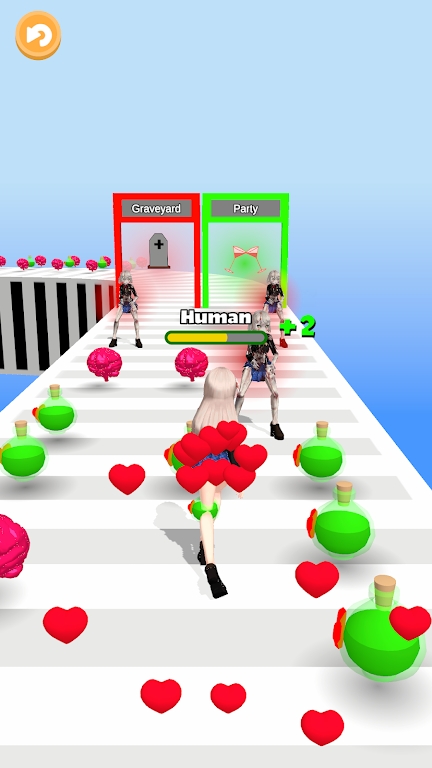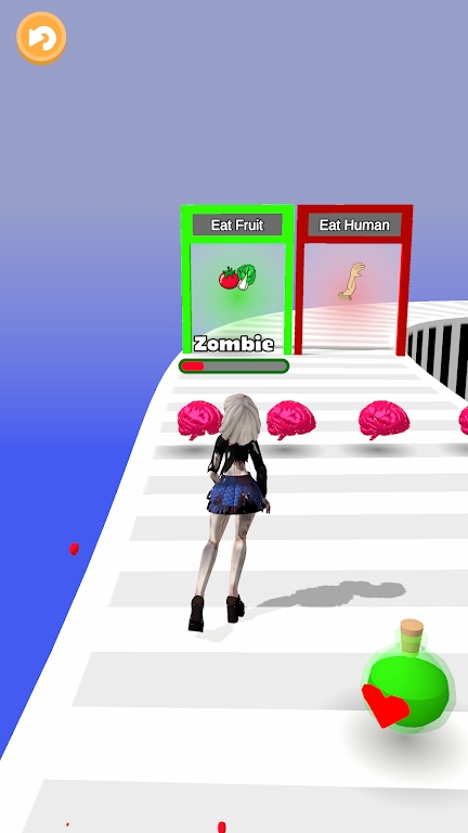 恋爱中的僵尸游戏介绍:末日来临的时候,你的身体旁边没有手臂,所以你必须不断地跑来跑去,只要你能跑得比僵尸的速度还快,你就不会被他们感染哦,还有在你逃生的过程中可以捡到武器哦,只要你拿着武器就可以射击僵尸。