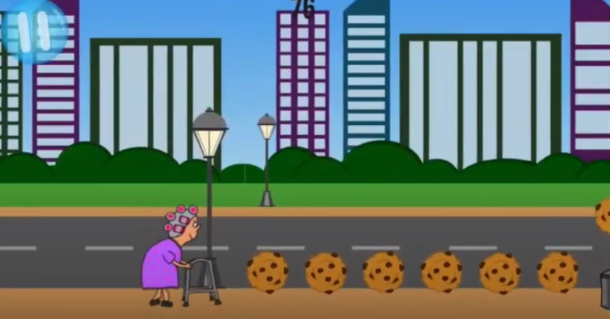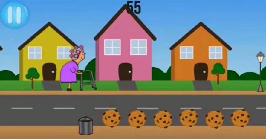 你可以操控老奶奶角色在关卡中尽可能的拾取更多的东西帮助自己提高奔跑速度。