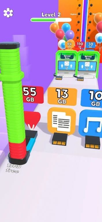 USB赛跑这是一款非常好玩又新颖有趣的USB跑酷闯关手游,玩家操纵U盘进行跑酷,不断地收集内存道具,增加U盘的容量,不同的应用会占用不同的容量,收集的内存越多,U盘就越大,容量就越多,最后的分数就越高,还有超多有趣的关卡等你来挑战。