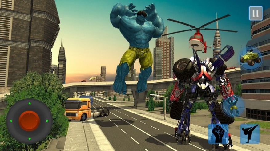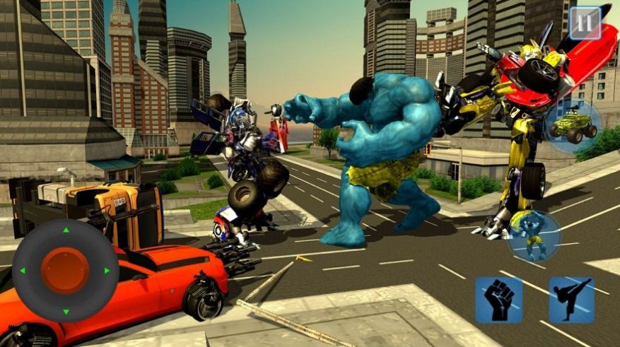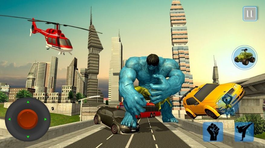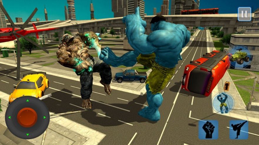 2、组织他们破坏城市。手游操作很简单,一个控制方向的按钮,三个控制格斗动作的按钮。