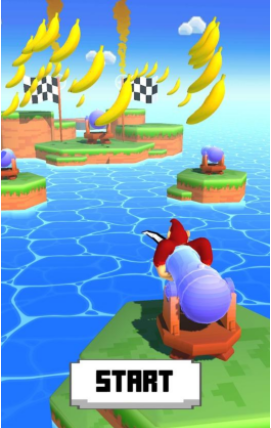 3、多试几次就好啦,将猩猩射到下一座小岛的同时还能收集香蕉,通过多次的炮弹射击,到达终点。