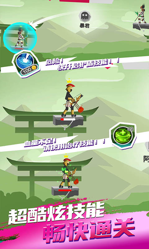 1、精彩的闯关手游,英雄弓箭手挑战强敌,每个关卡随机出现不同的敌人。