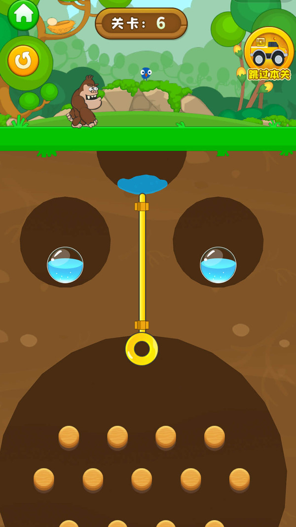 1、简约卡通风格,创意想法想出最佳的营救方案,开启不同的拉针机关;