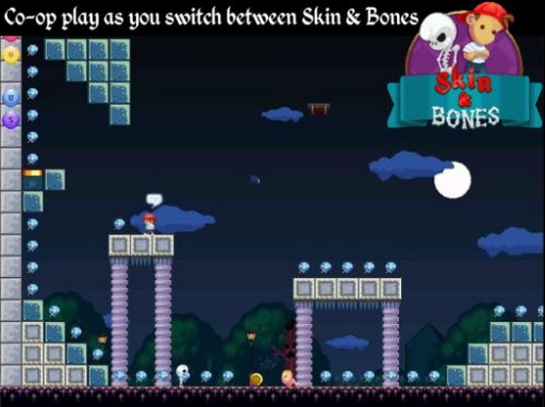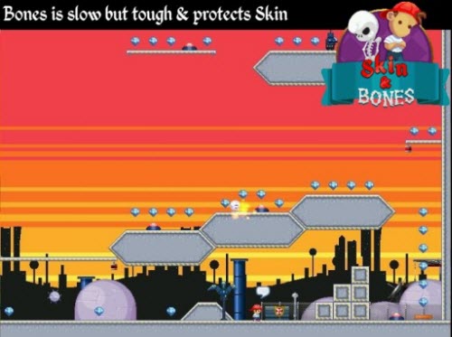 像素风格的冒险手游,.两个角色中,“皮肤”的身体柔韧性较好,主要负责收集手游场景中的钻石,“骷髅”主要负责将场景中的敌人和陷阱清理掉,在手游里用户控制两个角色分工合作,完成一次次危险又刺激的冒险。