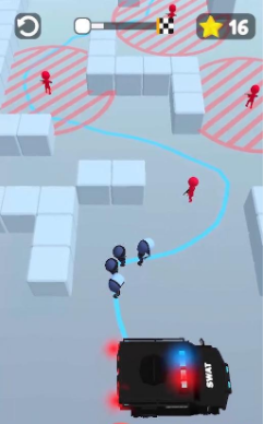 你以为仅仅是画一条线就行了吗?不是这简单的因为会有敌人还有墙壁的阻碍,让你不能一下子到达人质的身边,所以想要成功解救出来人质,需要观察敌人与障碍物的位置,并发挥出自己的智慧,将自己的战术画在屏幕上,以打造出绝佳的线路,更好的解救出人质。