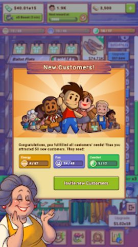 4、解锁和升级新的商店和人员。
