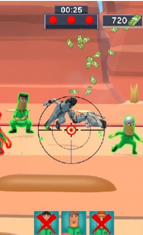 2:但是这一次你扮演的不是参赛者,而是“木头人”,你要在规定的时间内找到那些犯规的人,并进行瞄准射击。