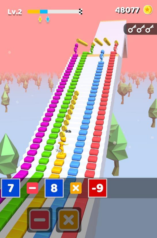 2、结合计算玩法,如果你的速算更快一些,那么你可以抢先奔跑,去收集方块。