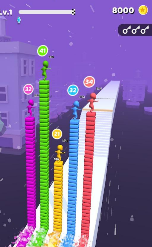 1、指尖操作控制小人的移动,你想要去收集同颜色的方块,最终多的人才有机会夺冠。
