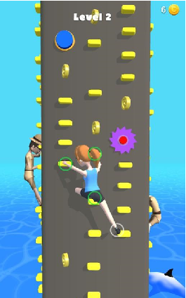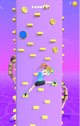 1、以攀岩为主题的游戏,相对于之前的细节做了一些优化,简单的街机机制,点击左或右,获得具有不可思议技能的角色。