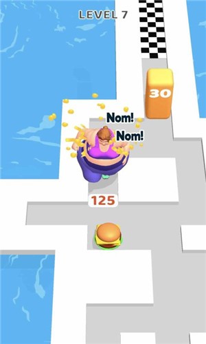 4、在吃和推手游里,你想要控制人物吃掉一路上的高热量食品,披萨、汉堡等等,以此增加自己的体重。