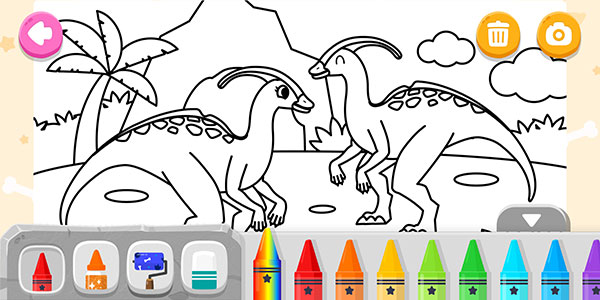 2、挑选喜欢的恐龙,为它们涂鸦填色吧。