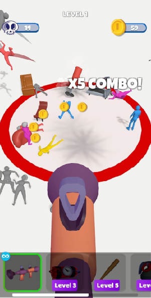 攻击圈这作为一个非常好玩的动作闯关手游,在这款攻击圈手游中,手游的玩法特别简单,每一个操作易上手,游戏中,游戏中用户需要将每一个的敌人赶出圈外才算赢得胜利,可以使用颈金币解锁不同的武器,然后轻松的点击画面,射杀范围内的敌人,完成挑战!
