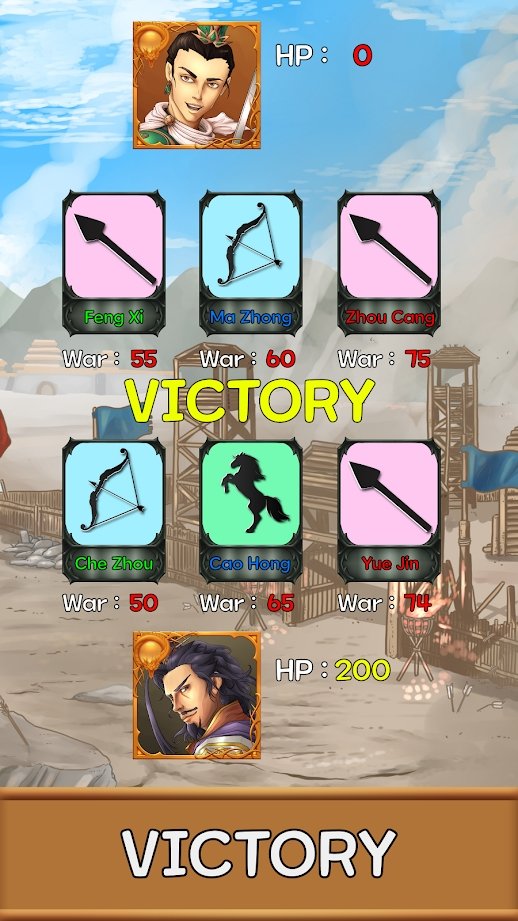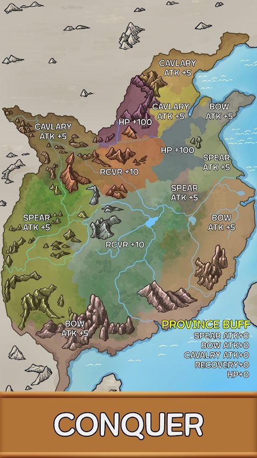 战斗中随机选择三种类型的部队矛、弓和骑兵。