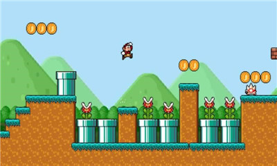冲呀超级马迪诺作为一个玩法类似于超级玛丽的闯关手游,这款采用经典的界面,冲呀超级马迪诺手游内你可以通过操控自己的人物角色进行闯关,各种类型的障碍物和陷阱会阻拦你的去路,你能通过点击屏幕中的跳跃按钮轻松的进行躲避,感兴趣的小伙伴赶紧来超能街机下载吧!