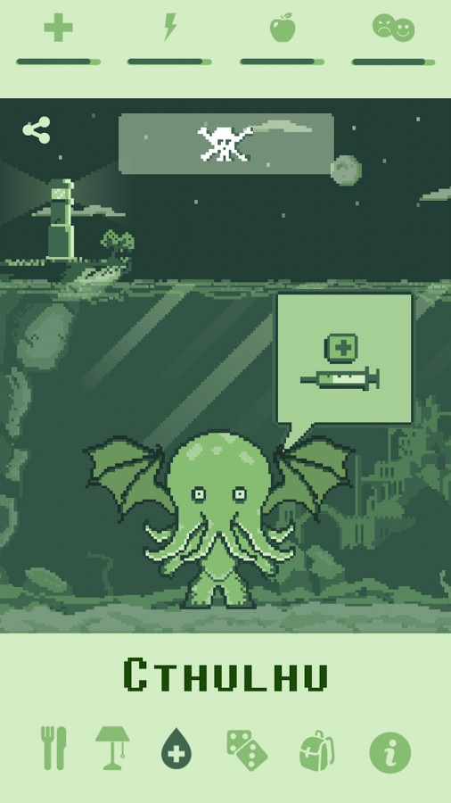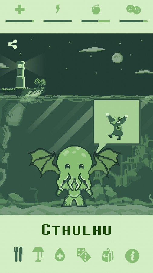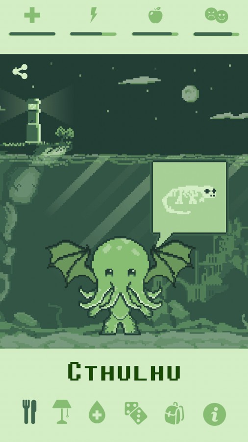 4、《克苏鲁模拟宠物》是一款复古像素风格的宠物养成游戏,采用淡绿色的像素画风,在游戏里面我们领养一只可爱的克苏鲁宝宝,然后像养其他的宠物那样一点点把它养大——给它治病、陪它、哄它睡觉,喂他吃人……这非同凡响的养成玩法,感兴趣的快来下载吧