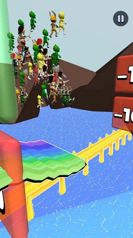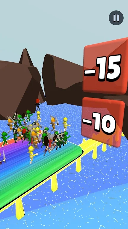1、控制不断向前英雄桥上下移动,让英雄桥上的士兵可以通过带有数学符号和数字的光门。