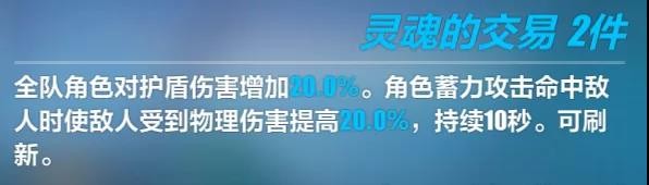 三件套则是将对护盾伤害的加成按30%的比例转换为对自身的全伤害加成,注意这部分全伤害仅能加成自身。以目前卡罗尔佩戴一整套专属来计算,对护盾伤害的加成高达410%,经过三件套的全伤转换后,可提供123%的全伤害加成。再加上卡罗尔自身对于蓄力攻击的各种伤害加成,真正可以做到“一拳超人”。