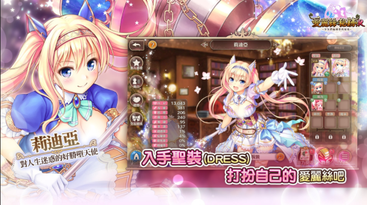 爱丽丝们有著各种稀有度的【圣装(DRESS】,只要入手新衣服还能获得全新技能以及新能力