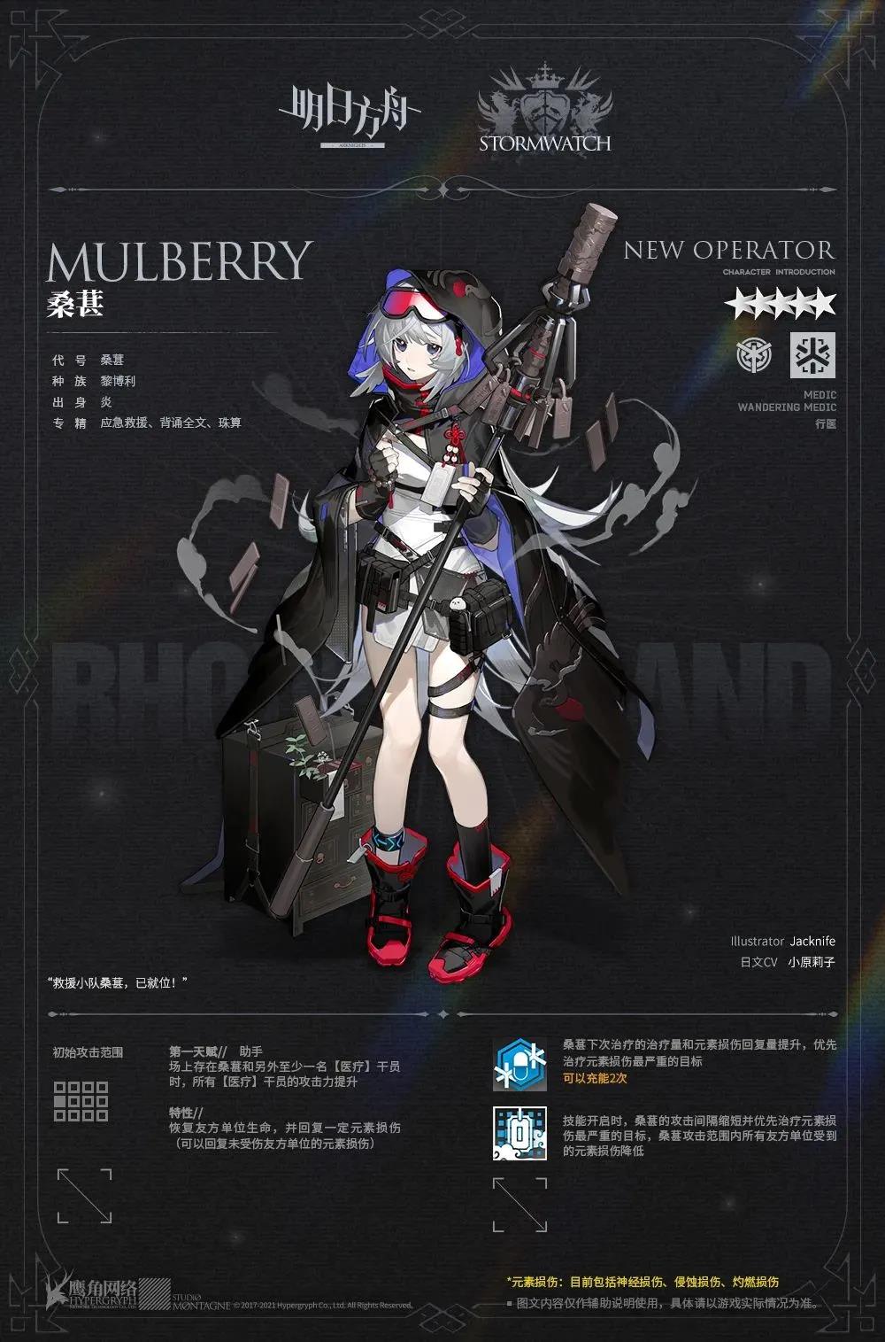 桑葚作为专职的对策型医疗干员在遇到有元素损伤的敌人时能带来现有常规打法之外的新思路,顶着大量元素损伤硬抗敌人将变得可能。但过分针对就有可能影响她的本职工作,在元素损伤不出现的关卡表现可能只能说中规中矩,所以在一般关卡下也不用优先考虑桑葚,毕竟医疗干员本来也不是特别重要的角色,练起来两三个大部分情况下绝对够用。不过桑葚的出现也同样预示着未来可能有更多元素攻击的敌人出现,不光是活动,主线,甚至危机合约都有可能会加入,因此将桑葚练到精一满级应该足够应付未来的情况。