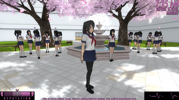 病娇模拟器作为一款萌妹子模拟类型的手游。在游戏里面用户扮演的女学生因极度迷恋学长,而无法接受其他女同学和学长有任何接触,于是决心在情敌下手前,也就是放学前有所行动。手游时长为一天。在这一天中用户扮演的女学生可以在校园内随意行走、逃课、乱穿男女卫生间,即使在老师面前晃来晃去也没关系,但是你要想方设法阻止情敌和你暗恋的学长接触,为此你可以做任何事。