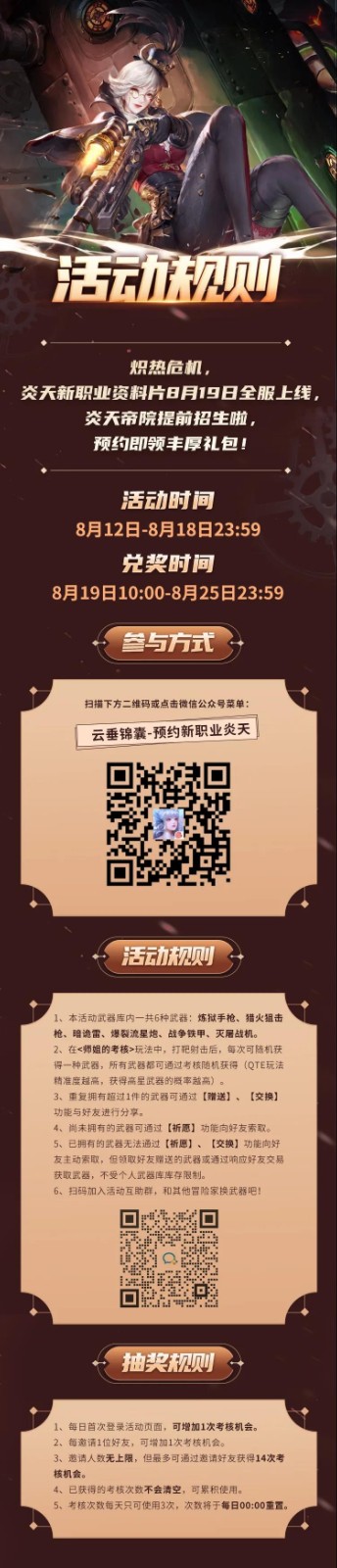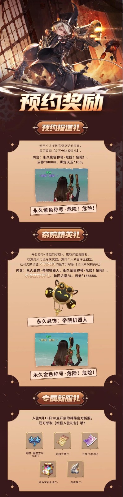 8月19日新职业炎天正式上线,参与预约活动,永久称号、永久饰品、免费转职券等你来拿!