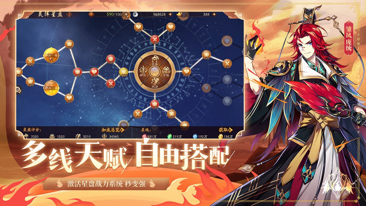 并且更有强化套装属性,大家在收集装备的同时也不要忘记装备的培养。觉醒系统,化身三国名将。