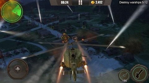 3.真实无比的战斗场面,冒着枪林弹雨,穿梭在敌军之中,驾驶最强武装直升机战斗